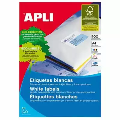 APLI 1281 GENERAL USE LABELS SQUARE CORNERS 1UP 210 X 297.0MM A4 WHITE 100 SHEETS
