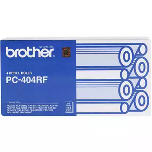 Brother Genuine Supplies | Consistent Quality Printouts - Experience consistently high-quality printouts with no streaking or smudging. Enjoy true-to-life images that can last for decades without fading | | SPECIFICATIONS | Compatible with the following: BROTHER FAX 645, BROTHER FAX 685, BROTHER FAX 685MC, BROTHER FAX 727, BROTHER FAX 737, BROTHER FAX 780, BROTHER FAX 817, BROTHER FAX 827, BROTHER FAX 837, BROTHER FAX 878, BROTHER FAX 960, BROTHER FAX 1280, BROTHER FAX 1980MC, BROTHER MFC 960MC | 144 Pages (estimated page yield provided based on 5% coverage or at ISO 2471 pattern/normal) | Colour: Fax Film | Pack of 4 | OEM: PC-404RF | UPC: 4977766058711