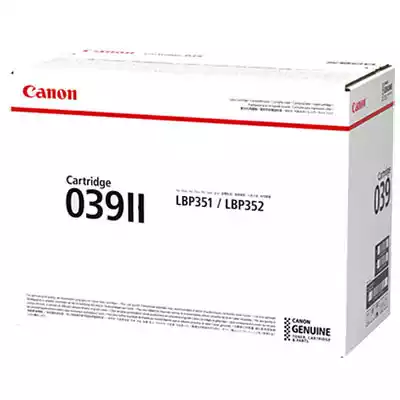 Genuine Canon Printer Consumables | The right consumables give you the sharp results you expect from Canon | Canon Inks and toners offer expanded colour reproduction and enhanced density, great for creative production | | SPECIFICATIONS | Compatible with the following: CANON LBP351X, CANON LBP352X | 25,000 Pages (estimated page yield provided based on 5% coverage or at ISO 2471 pattern/normal) | Colour: Black | OEM: CART039II | UPC: 4549292031492