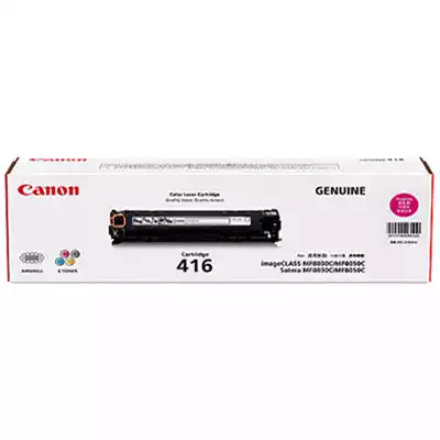 Genuine Canon Printer Consumables | The right consumables give you the sharp results you expect from Canon | Canon Inks and toners offer expanded colour reproduction and enhanced density, great for creative production | | SPECIFICATIONS | Compatible with the following: CANON IMAGECLASS MF8050CN, CANON IMAGECLASS MF8080CW | 1,500 Pages (estimated page yield provided based on 5% coverage or at ISO 2471 pattern/normal) | Colour: Magenta | OEM: CART416M | UPC: 4960999655390