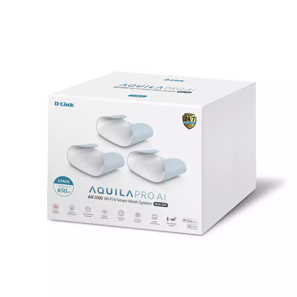 Experience exceptional wifi signal and uninterrupted connectivity throughout your home with the AQUILA PRO AI WIFI 6 SMART MESH ROUTER | Employing an advanced antenna configuration optimised to produce a more balanced 360 degree spherical wifi coverage range and equipped with 5 powerful antennas including one extra 5 ghz antenna for extended range on the faster 5 ghz band | This product ensures greater overall coverage and faster performance, making it perfect for high-bandwidth applications like 8K streaming and LAG-free gaming | And if you need more coverage, AQUILA PRO AI is a grow-as-you-need mesh solution, where you can add additional units to expand coverage and build a whole home mesh system