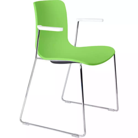 Picture of DAL ACTI CHAIR SLED BASE ARMS WHITE ARM-PADS AND CHROME FRAME GREEN POLYPROP SHELL