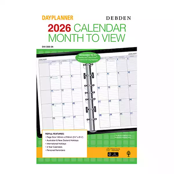 DEBDEN DAYPLANNER DK1300 DESK EDITION REFILL MONTH TO VIEW 216 X 140MM WHITE