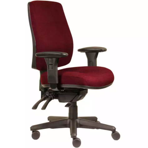 Provide the right support for your body while you work! The Spark ErgoSelect chair has a modern look and promotes an ergonomically correct seating position while being exceptionally comfortable | This chair features a supportive high back with arms and a lumbar adjustment pump | Comes with a heavy duty 3 lever multifunction seat mechanism with adjustable seat slide, ratchet height adjustable back and a 130mm gas lift | Upholstered in Warwick Gravity fabric, colour Scarlet | Fully adjustable seat tilt | Fully adjustable back height | Fully adjustable back angle | Fully adjustable seat height and depth | Adjustable lumbar pump in back