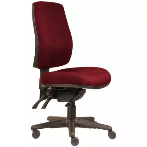Provide the right support for your body while you work! The Spark ErgoSelect chair has a modern look and promotes an ergonomically correct seating position while being exceptionally comfortable | This chair features a supportive high back with a lumbar adjustment pump | Comes with a heavy duty 3 lever multifunction seat mechanism with adjustable seat slide, ratchet height adjustable back and a 130mm gas lift | Upholstered in Warwick Gravity fabric, colour Scarlet | Fully adjustable seat tilt | Fully adjustable back height | Fully adjustable back angle | Fully adjustable seat height and depth | Adjustable lumbar pump in back