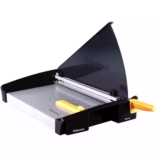 Top of the range Guillotine suitable for heavy duty office use | IDEAL for heavy use in the Large Office | Cuts up to 40 sheets (80gsm) at a time | Heavy duty stainless steel blade facilitates a smooth, one cut motion | Cuts up to A3 size paper for added flexibility | Full size SafeCut Guard prevents mishandling and is pre-assembled and foldable so no need for assembly and folds down for storage | Solid metal base with integrated anti-slip feet | Cutting guides for DIN sizes, photos and radius for angled cuts | Accredited with TUV and GS safety approval | Paper clamp minimises paper movement when cutting | Adjustable back margin for precise repeat cutting
