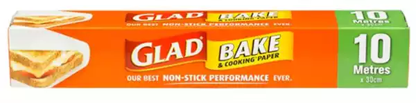 GLAD BAKE & COOKING Paper is made from a high-quality baking and cooking paper with a specially designed non-stick coating, which eliminates the need for fats and oils when cooking enabling you and your family to eat healthier with less mess