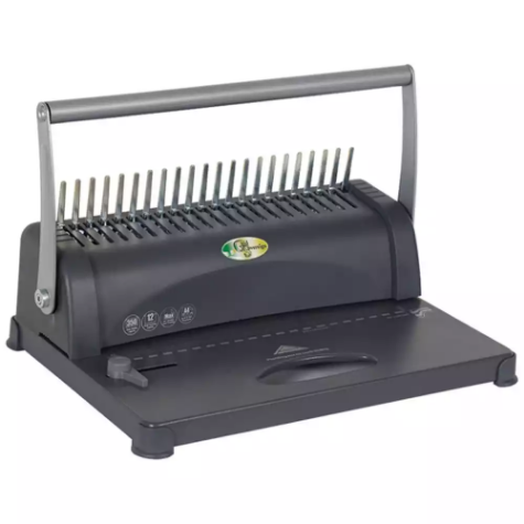 For the small office or home office the GS12 is an ideal solution for creating bound documents for all presentations | Small in size big on function the GS12 is easy to use and will bind a 350 page document, it also has the added feature of a 4 hole punch suitable for ring bingers | Punches up to 12 sheets | Binds up to 350 sheets | Ergonomic handle | Easy to use | Incorporated 4 hole punch | Large waste draw | Compatible with A4 21 loop plastic binding combs | 2 year warranty