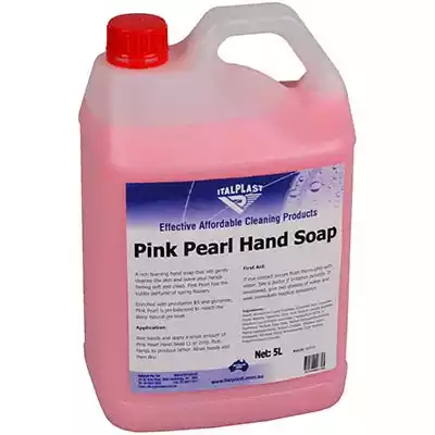 Italplast Pink Pearl hand soap is a rich foaming, floral fragrance liquid soap | Conditioned with glycerine, pro vitamin B5 and coconut oil that leaves the hands soft and supple | Australian Made hand cleaner that enhances the amenity of washrooms in any office or warehouse | Fragrance: Floral | Size: 5 Litre