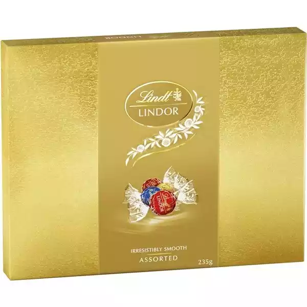 • LINDT LINDOR ASSORTED CHOCOLATE BALL GIFT BOX 235GM