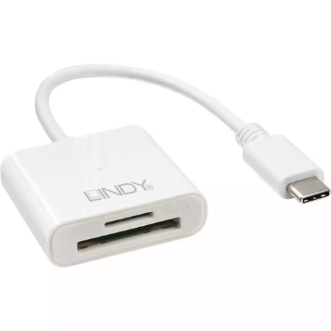 The Lindy USB 3.1 Type C SD Card Reader makes it easy to quickly transfer photos, music or other data to or from a user's computer or mobile device with a USB Type C interface | USB 3.1 Gen 1 / USB 3.0 guarantees fast access with SuperSpeed data transfer rates up to 5Gbps | Installation is simple as no drivers are required and the Type-C's reversible design has been developed to work regardless of which way the cable is inserted into the port | The Lindy USB 3.1 Type C SD Card Reader is a useful tool for creative professionals as well as home users to manage multiple files | Access data of SD cards using a USB Type C enabled computer | Transfer photos, videos or music files to and from your SD or MicroSD card | USB 3.1 Gen 1 / USB 3.0 SuperSpeed 5Gbps data transfer rates | Plug and Play and USB bus-powered | 2 year warranty