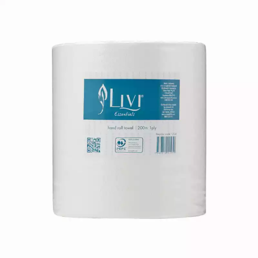 The Livi Essentials 1ply auto cut hand roll towel is a disposable hand towel for drying | The 2ply 200s roll dry's quickly and effectively | These disposable roll towels offer pre-controlled one-sheet-at-a-time dispensing with auto cut dispenser | PEFC certified guaranteeing environmentally responsible purchasing
