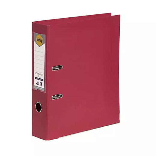 Marbig PE Lever Arch File | Standard, corporate colours ideal for colour coding documents or simply adding colour to your office | 75mm capacity with locking lever arch mechanism to keep pages secure | Holds up to 375 sheets of paper | Rado fitting allows easy closure so you can fit more on your shelf | Linen finish design | Cover is made from durable and moisture resistant Polyethylene (PE)