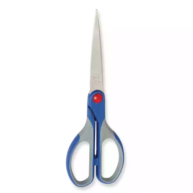 Premium quality scissor made of heavy gauge stainless steel blades with a strong, durable edge | General purpose scissors, suitable for cutting light cardboard, paper, tape, cloth and many other materials in the office or home | Comfortable, moulded grip handles for effortless, easy cutting | Blades are corrosion-resistant | Contemporary blue colour with gray insert