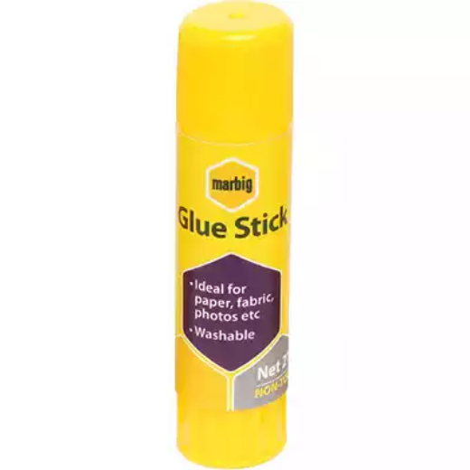 Marbig Glue sticks have a new and improved formula with a faster drying time and longer lasting adhesion | Smooth, solid white stick glue that goes on clear and dries clear | Providing an easy, no-mess way to glue papers in the home, office or school | Non-toxic all purpose glue and safe for children | Available individually in convenient display boxes for easy sale | Ideal for gluing paper, card, light wood, fabric and some plastics | Great for the home, office or school - perfect for school projects, cut and paste, craft activities and scrapbooking