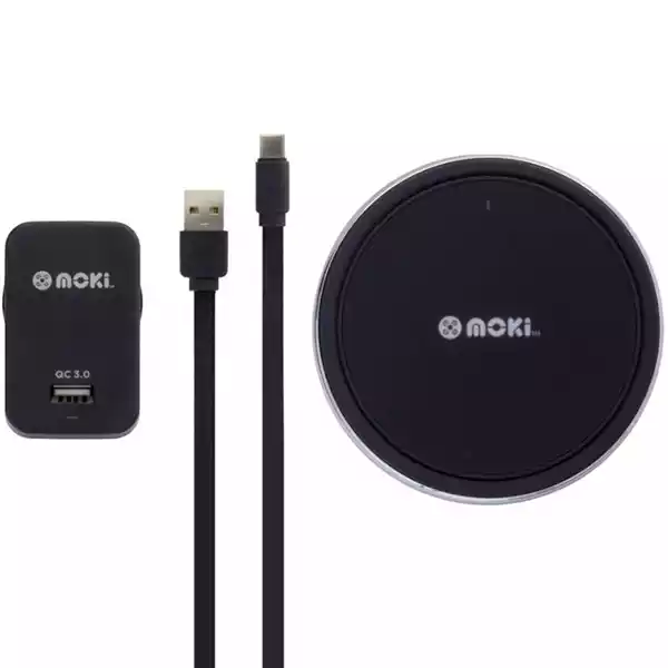 MOKI QI WIRELESS RAPIDCHARGE CHARGING PAD 10W TYPE-C 3.0 BLACK