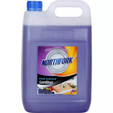Northfork food surface sanitiser is specially formulated to be ready to use directly from the bottle | Formulated for effective sanitation in food service operations | When used correctly, surface does not require rinsing | Kills a broad spectrum of bacteria in 60 seconds | Quaternary ammomium based sanitiser | Made in Australia