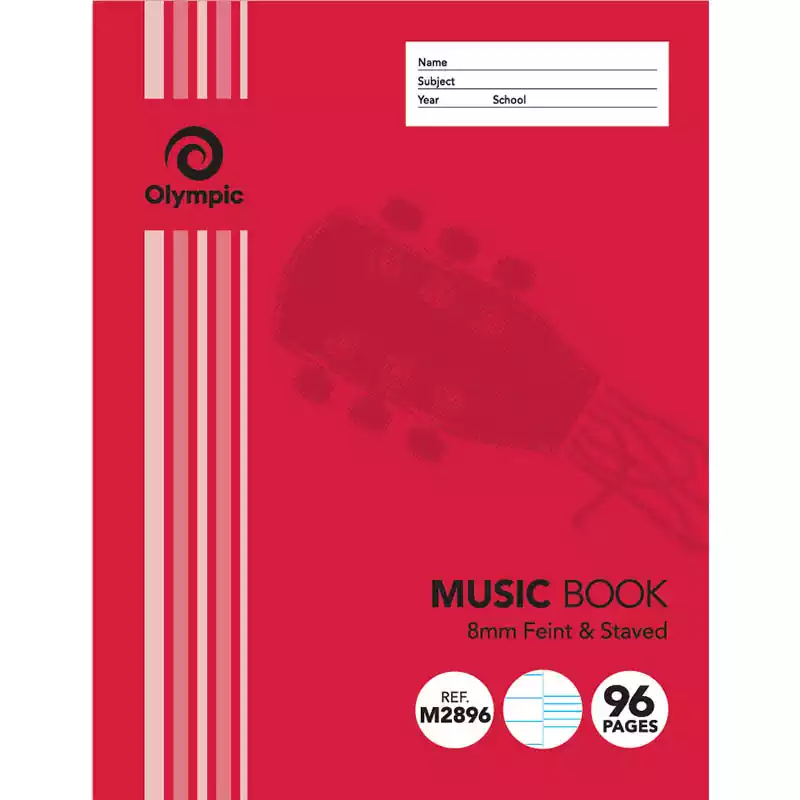 With a wide range of quality scholastic products to choose from | Olympic inspires confidence at work, home or school | 8mm Feint & Stave Ruled | 64 pages 8mm Feint Ruled with middle 32 pages Music Stave | Booklist Ref: M2896 | Size: 225 x 175mm (9 x 7 inch) | Binding: Stapled | Ruling: 8mm | Colour: White | Format: Feint and Stave | Number of pages: 96 Page | OEM: 197748