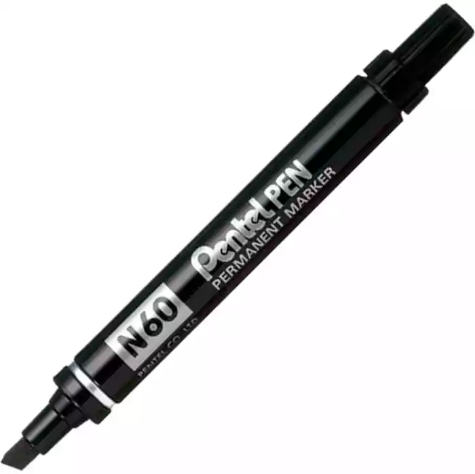 • PENTEL N60 PERMANENT MARKER CHISEL 5.5MM BLACK BOX 12