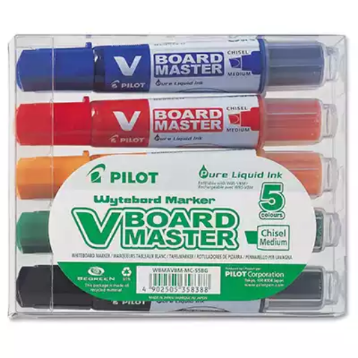 • PILOT BEGREEN V BOARD MASTER WHITEBOARD MARKER CHISEL 6.0MM ASSORTED WALLET 5