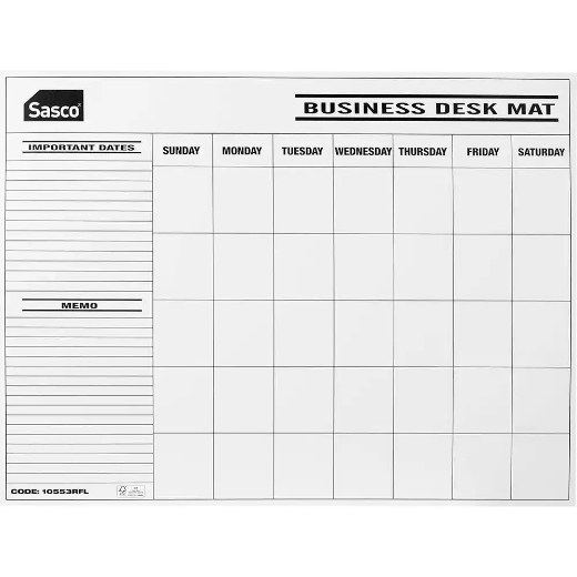 SASCO DESK PLANNER CALENDAR UNDATED MONTH TO VIEW 455 X 580MM BLACK