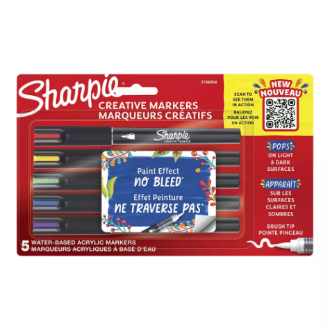 • SHARPIE CREATIVE WATER-BASED ACRYLIC MARKERS BRUSH TIP ASSORTED COLOURS PACK 5
