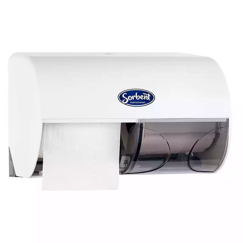 Blending quality and affordability, SorbentProfessional twin toilet roll dispenser is an ideal choice for offices and other quality, high traffic bathrooms | It is compatible with jumbo sized toilet roll and has a fully covered design for improved hygiene and protection | Refilling is easy, with simple key and a push to open and is lightweight yet impact resistant | Sorbent Professional Dispensers are must have addition for high traffic washroom areas