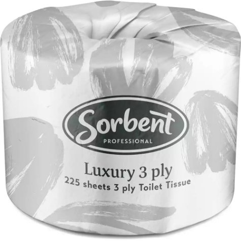 Sorbent Professional Luxury 3ply toilet tissue provides the comfort of home when away from home (did you know that 80% of Austrlaian households use 3ply at home?) | The concise roll length of 225 sheets is designed for premium bathrooms where superior softness is valued | Each toilet paper roll is presented in stylish individual packing for improved hygiene and presentation | Each sheet consists of 3 layers of tissue, double embossed for softness and bulk without compromising on strength | Sorbent Professional Luxury toilet paper is for the discerning users that expect the quality of an iconic Australian brand | Compatible with Sorbent Professional 25502 dispenser