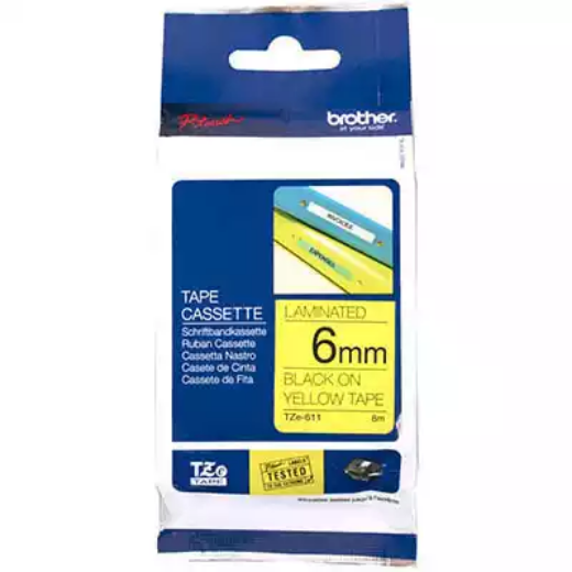 Picture of BROTHER TZE-611 LAMINATED LABELLING TAPE 6MM BLACK ON YELLOW Picture of BROTHER TZE-611 LAMINATED LABELLING TAPE 6MM BLACK ON YELLOW
