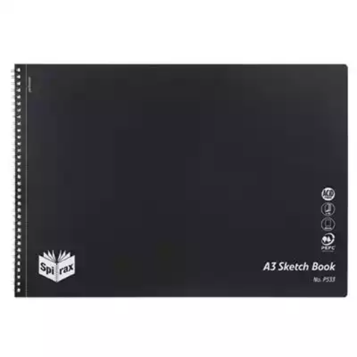 SPIRAX P533 SKETCH BOOK SPIRAL BOUND SIDE OPEN 40 PAGE A3 BLACK