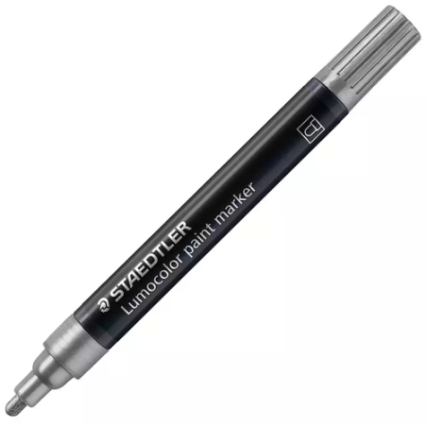 Lumocolor paint marker | The marker housing is made of 97% recycled plastic and the opaque colours transform many surfaces into an opportunity for creativity | For opaque writing, decorating and designing on almost all light and dark surfaces such as paper, cardboard, plastic, metal, glass, ceramic, wood, stone etc | Permanent, low-odour water-based acrylic ink | Excellent smudge-proof and waterproof qualities on almost all surfaces | Fast-drying | Lightfast | Weatherproof | High colour brilliancy | The valve system enables an even flow of ink and a clean, precise application (Compared to conventional acrylic paints out of the tube) | The colours can be mixed and watercoloured before drying | After drying the colours can be applied on top of each other | Line width approx. 2.4 mm