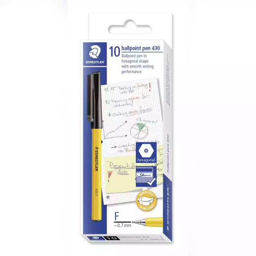 • STAEDTLER 430 STICK BALLPOINT PEN FINE BLACK BOX 10