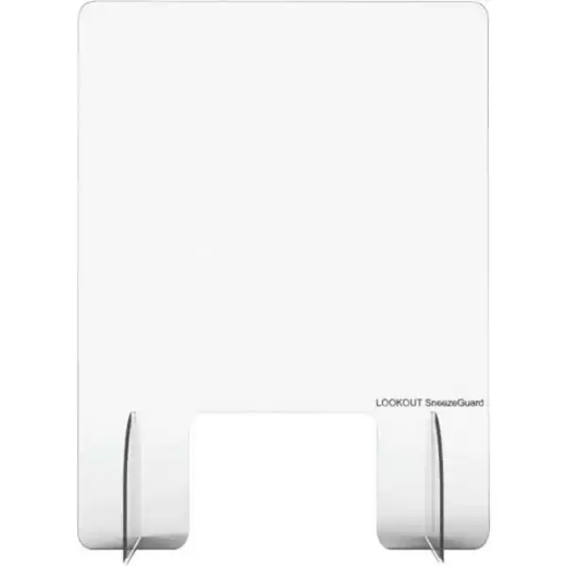 Simply breathing and speaking can expel droplets which may contain contagious diseases, singing, shouting and coughing even more so | Lookout Sneezeguards are made of 5mm crystal clear acrylic and are designed for face to face interaction and to limit contact | They simply slot together and sit on the desktop | no assembly or installation required | Available in two sizes | 5mm Crystal clear acrylic | Slot in feet allow the screen to stand without mounts | feet are included with screen