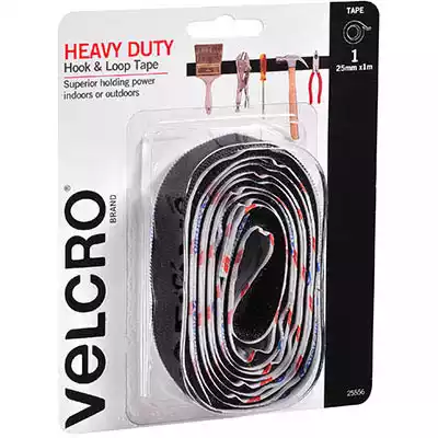 VELCRO Brand heavy duty hook & loop fasteners are aggressive moulded hook and woven loop closure system with a superior water resistant rubber based adhesive for indoor and outdoor use | The adhesive will achieve 80% bond strength in about an hour and full strength in 30 hours | The VELCRO Brand heavy duty hook & loop range offers 50% more holding power than the everyday general product range | UV and weather resistant (-18 to 80 degC) for semi-Permanent jobs | Designed to adhere to rough surfaces including concrete and certain types of brick | Superior holding power on smooth surfaces, including plastic, indoors and outdoors
