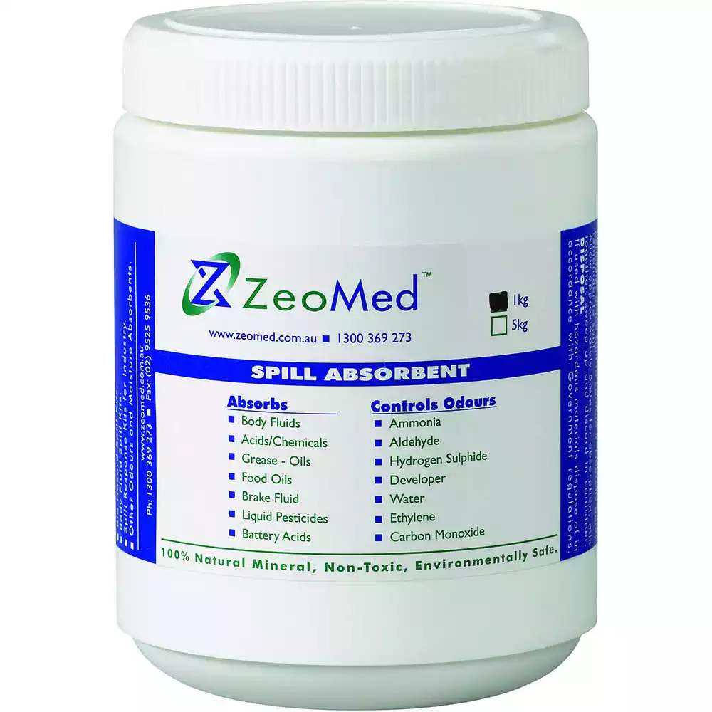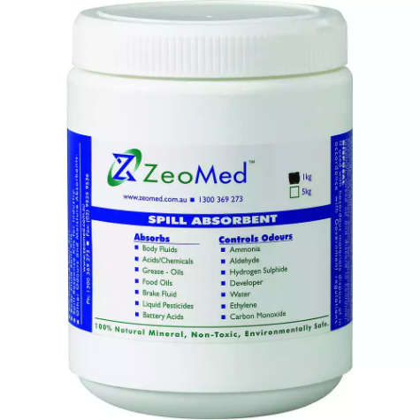 ZeoMed clean-up powder | ZeoMed is the ideal solution for locations with spill risks ranging from biohazard and chemical spills to general slip and fall hazards, such as cooking oils or detergents | Suitable for laboratories, supermarkets, shopping centres and restaurants | Quick acting, natural absorbent of toxic and noxious odours | 100% natural mineral and ecologically safe | Non-toxic | Absorbs excess moisture helping coagulate spills | No shelf life - powder does not expire